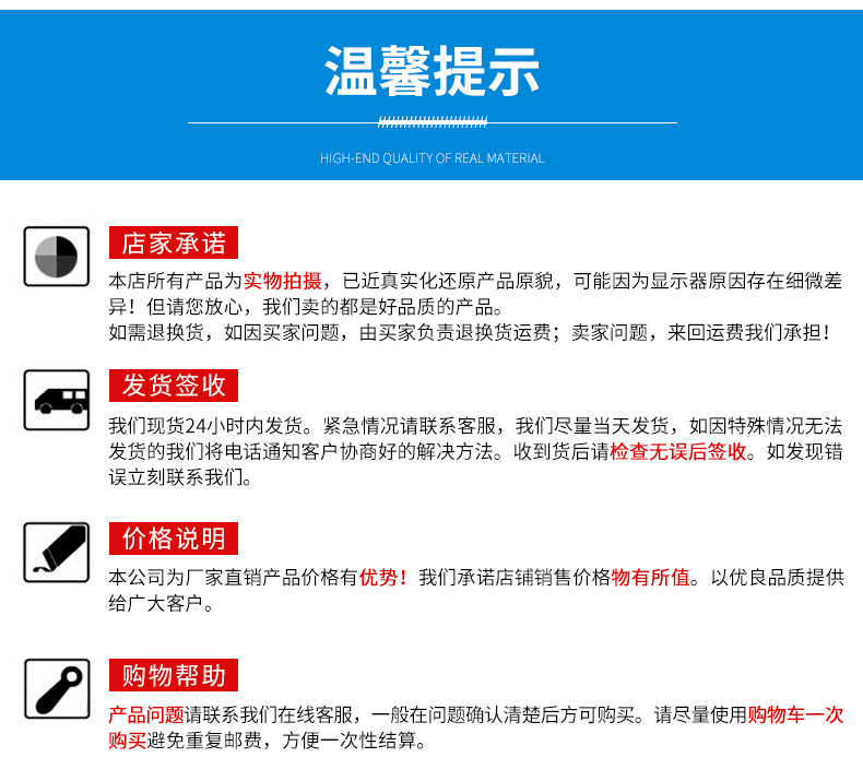 我司将始终坚持“客户至上”的经营理念, 坚持外抓市场,内抓管理,走质量效益型发展道路,取得了良好的经济和社会效益。凭借值得信赖的品质、先进的管理经验、优良的销售服务、严格的质量进货管 理体系和科学的整体营销手段,与您携手并进,共同发展。